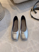 The Row 2025 Square-toe Ballet Flat Silver Sheepskin 557428