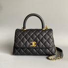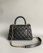 coco handle flap bag 23cm black quilted caviar gold hardware