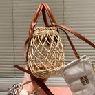 WOVEN HOLLOW BAG 18 IN BEIGE RATTAN AND BROWN CALFSKIN TRIM