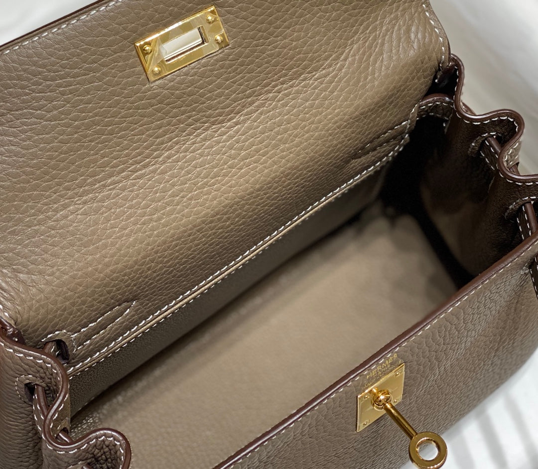 HM Mini Kelly 20cm Gris Meyer Togo Leather Gold Hardware