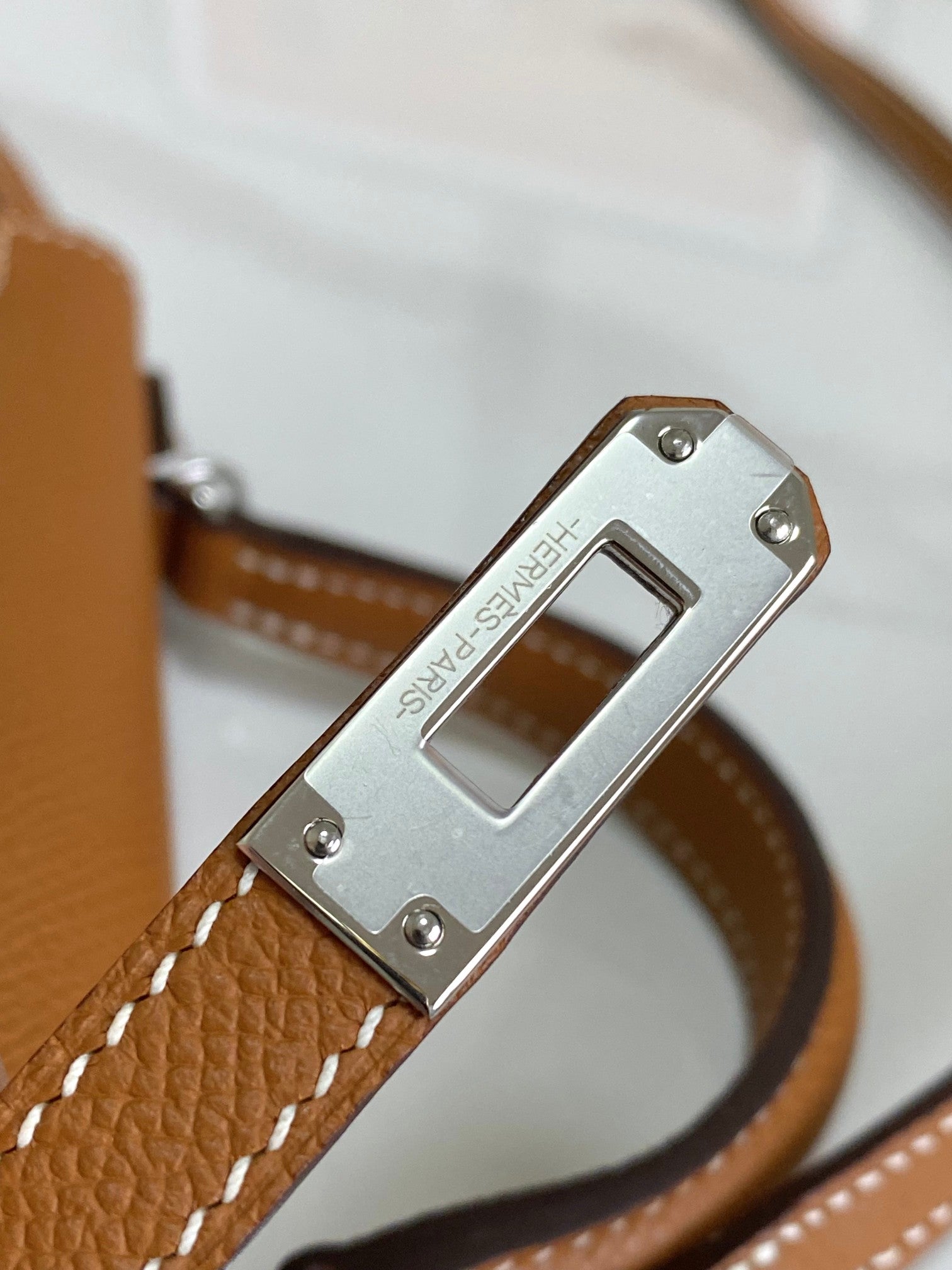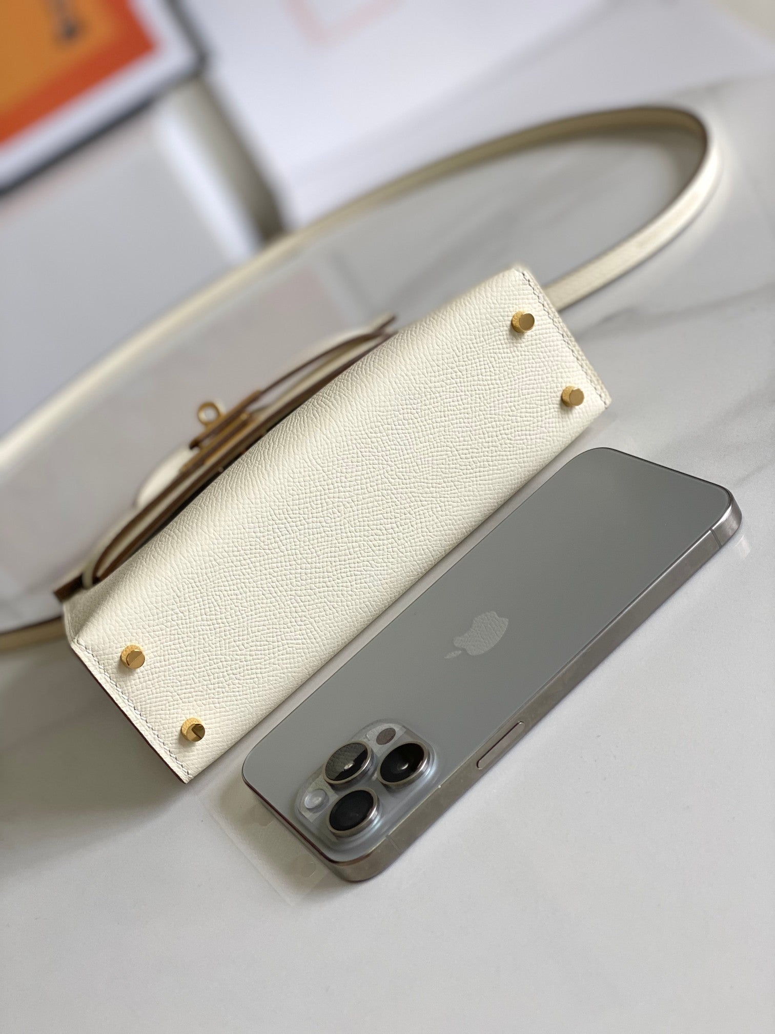 HM Mini Kelly 19cm Cream Gold Epsom Silver Hardware