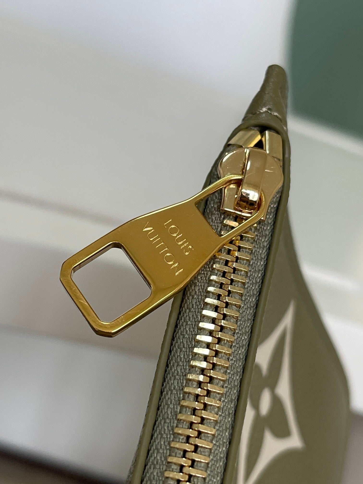 NEVERFULL MM 32 KHAKI CREAM MONOGRAM EMPREINTE LEATHER