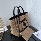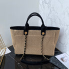 CC 25 Deauville Tote Bag 34cm Beige Black Crochet Suede