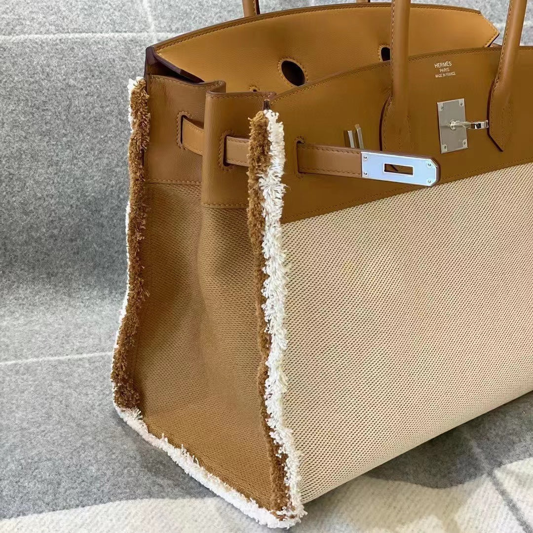 HM BIRKIN 35CM FRAY CANVAS SILVER HARDWARE