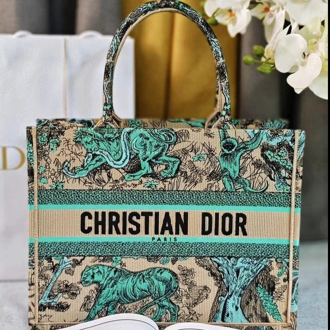 medium dioriviera book tote 36 tiffany blue tiger embroidery canvas