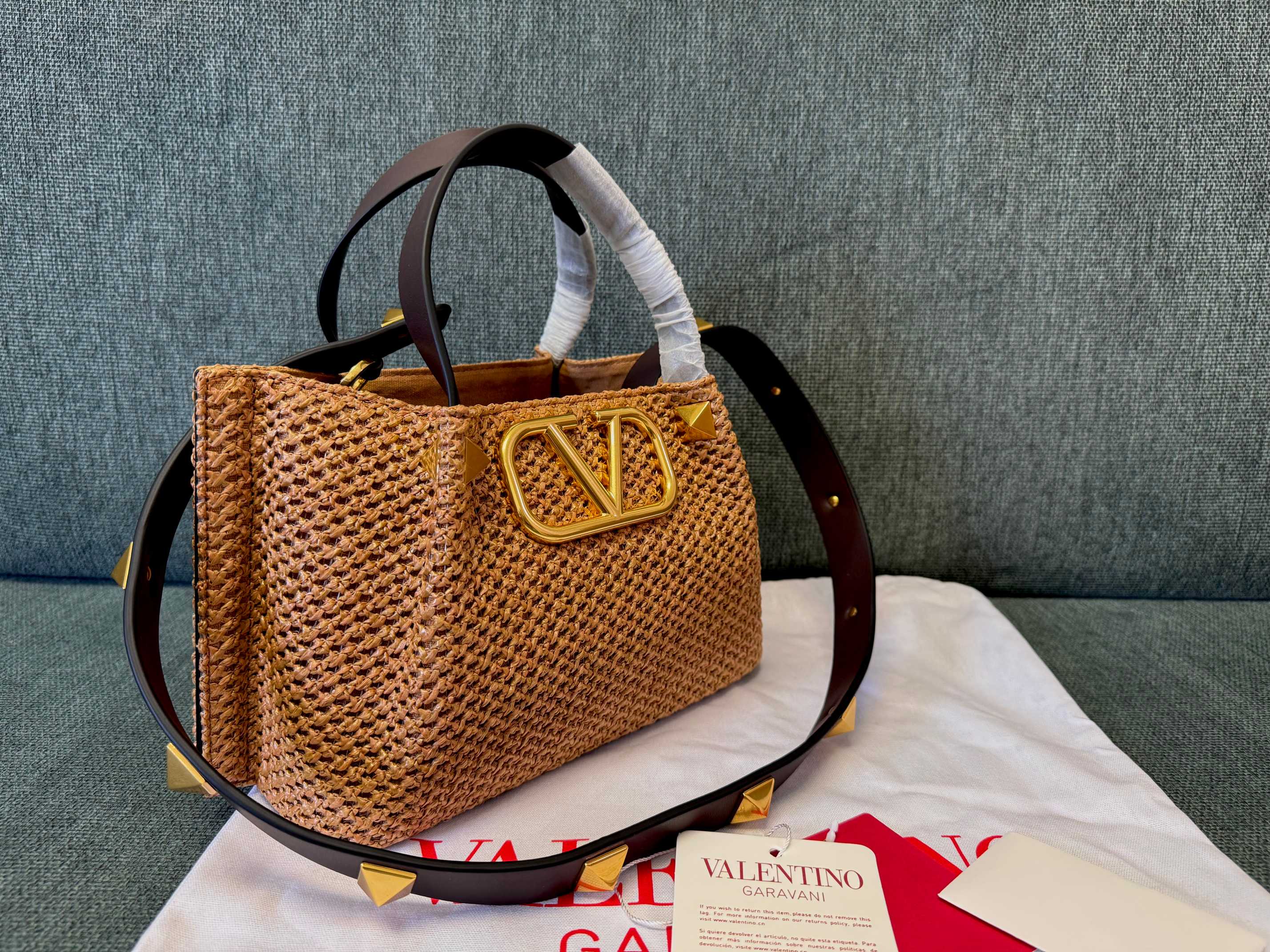 Valentino Spring and Summer 25 Tote Bag Brown Raffia