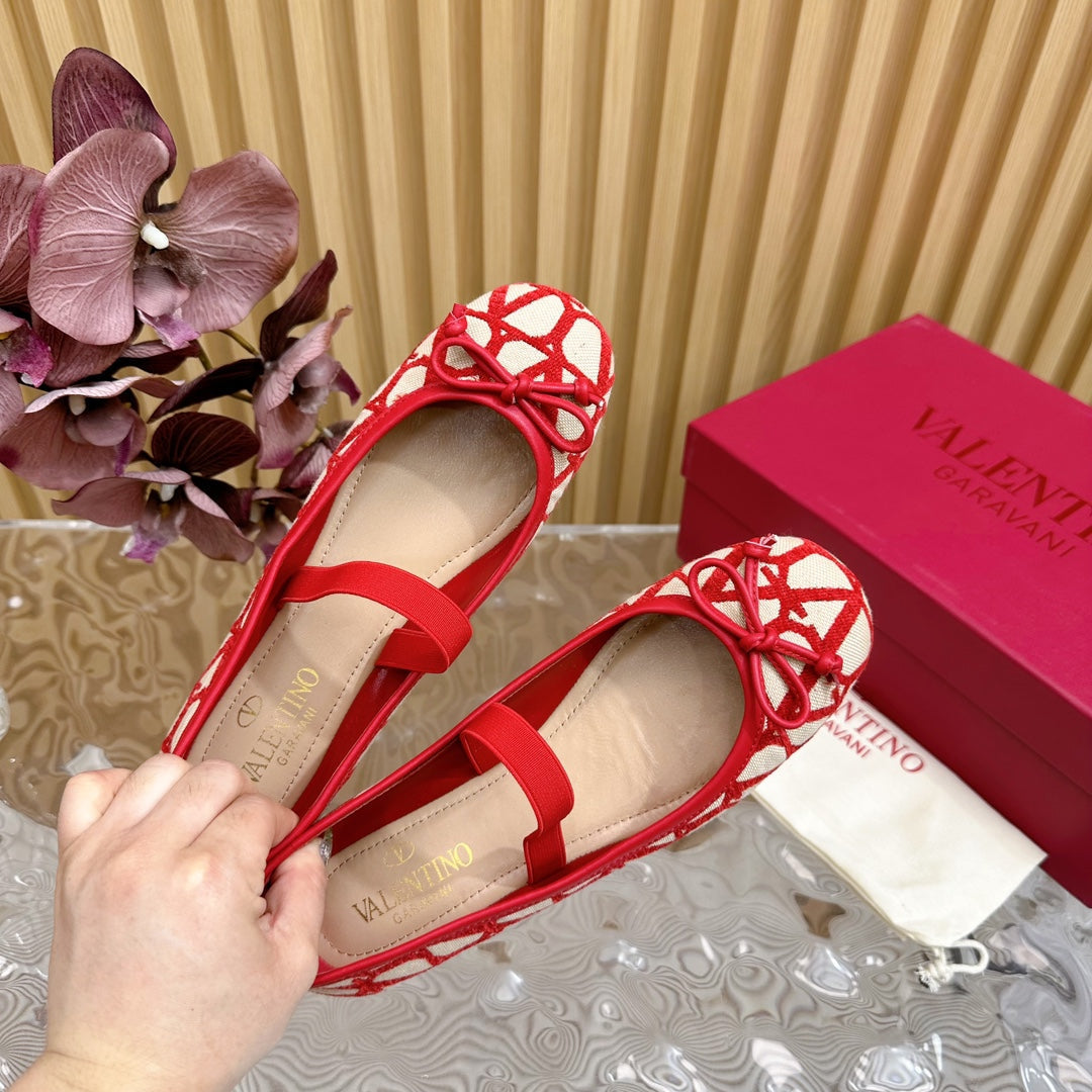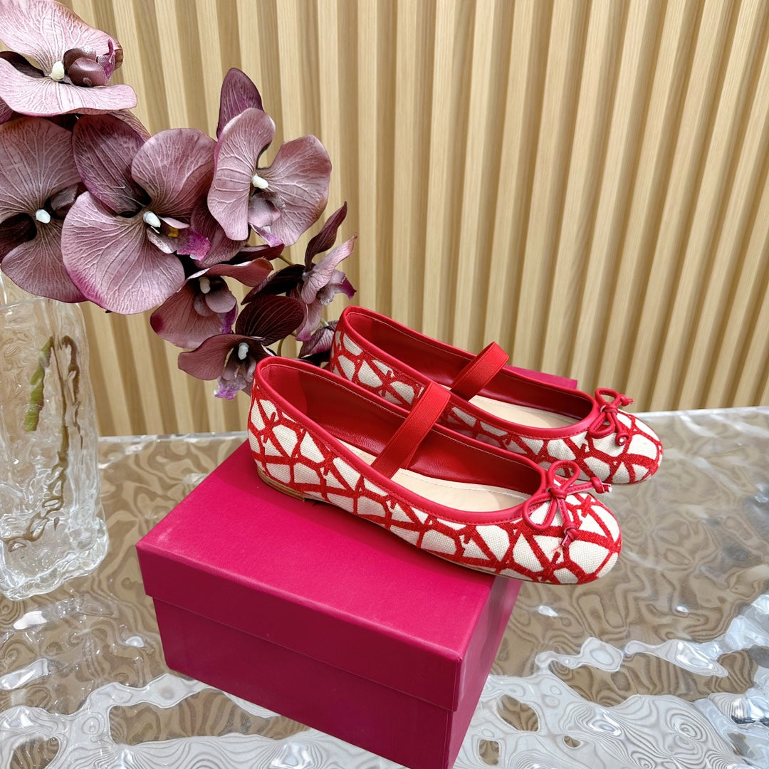 Ballerina In Toile Iconographe 20mm In Red Mix Beige Cotton Canvas And Lambskin 102832