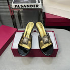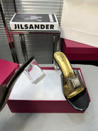 Heeled Sandals 6cm with Crystal Square Buckle Gold and Black
