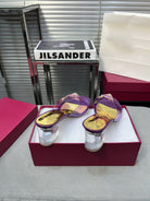 Heeled Sandals 6cm with Crystal Square Buckle Gold and Purple