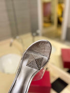 HIGH MULE 60MM IN SILVER SHEEPSKIN AND TRANSPARENT PVC