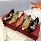 One Stud Gold Patent White Leather Pump