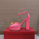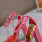 Open Toe Pump With One Stud Gold Patent Pink Leather 130MM