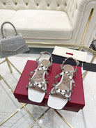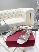Rockstud 1cm Square Toe Rose Cannelle and Silver Leather Sandals