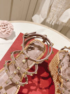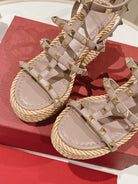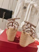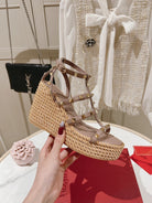 Rockstud Ankle Strap Wedge Sandal Calfskin Poudre 10cm