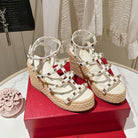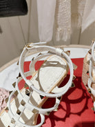 ROCKSTUD ANKLE STRAP WEDGE SANDAL IN WHITE CALFSKIN LEATHER 95 MM