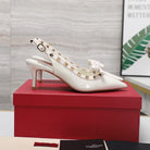 ROCKSTUD BOW SLINGBACK WHITE PATENT LEATHER PUMP 60MM