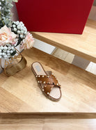 Rockstud Crisscross Espadrilles 20mm Sandal Wedges Tan