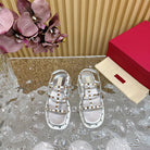 Rockstud M-Way Platform Sandal Grey Leather