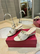 ROCKSTUD MULE SANDALS WITH TRANSPARENT HEEL IN WHITE CALFSKIN