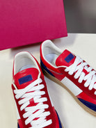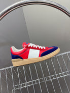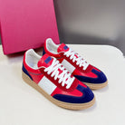 Upvillage Trainer In Red Mix Deep Blue Laminated Calfskin With Suede 989608