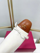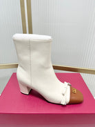 Valentino 2025 Bow Square Toe Zipper Ankle Boot White Brown Cowhide 549735