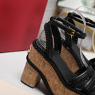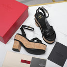 Valentino Garavani VLogo Summerblocks Wedge Sandals 115mm Black Mix Brown Cowhide And Nylon Rope 821113