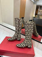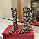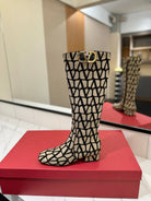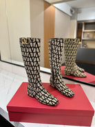 Valentino Garavani VLogo Tall Monogram High Boots 30mm In Beige Mix Black Canvas Fabric 992785