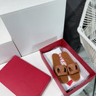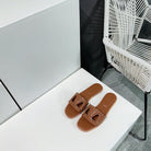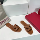 Vlogo Cut-Out Tan Calfskin Slide Sandal