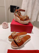 VLogo Signature Calfskin Wedge Sandal 90mm Burgundy