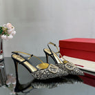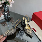 Vlogo Signature Slingback 70 Gold Black Calfskin With Crystals