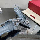 Vlogo Signature Slingback Blue Calfskin and Velvet