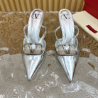 Vlogo Signature with Crystals Cut-Out Slingback Pump 70 Silver Calfskin