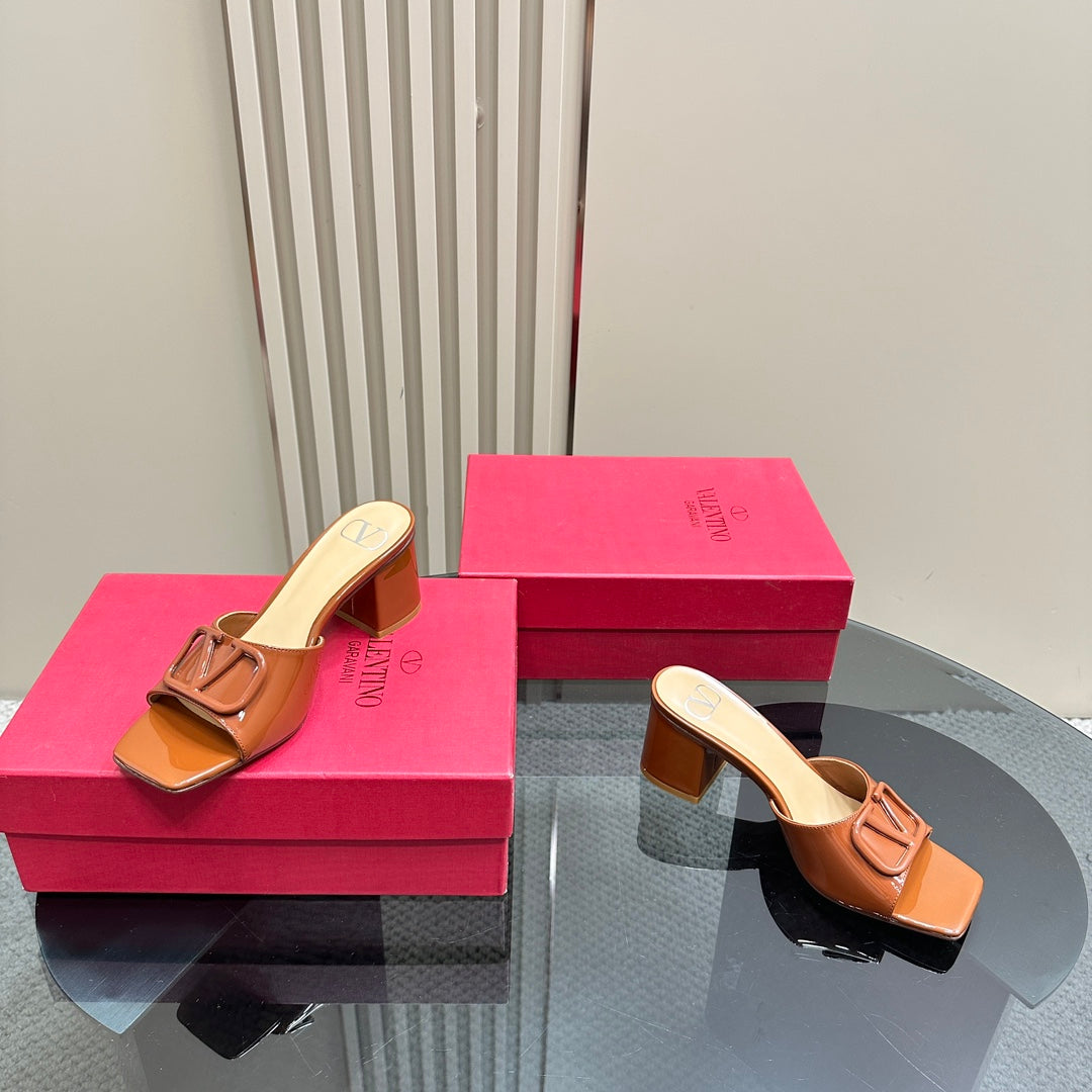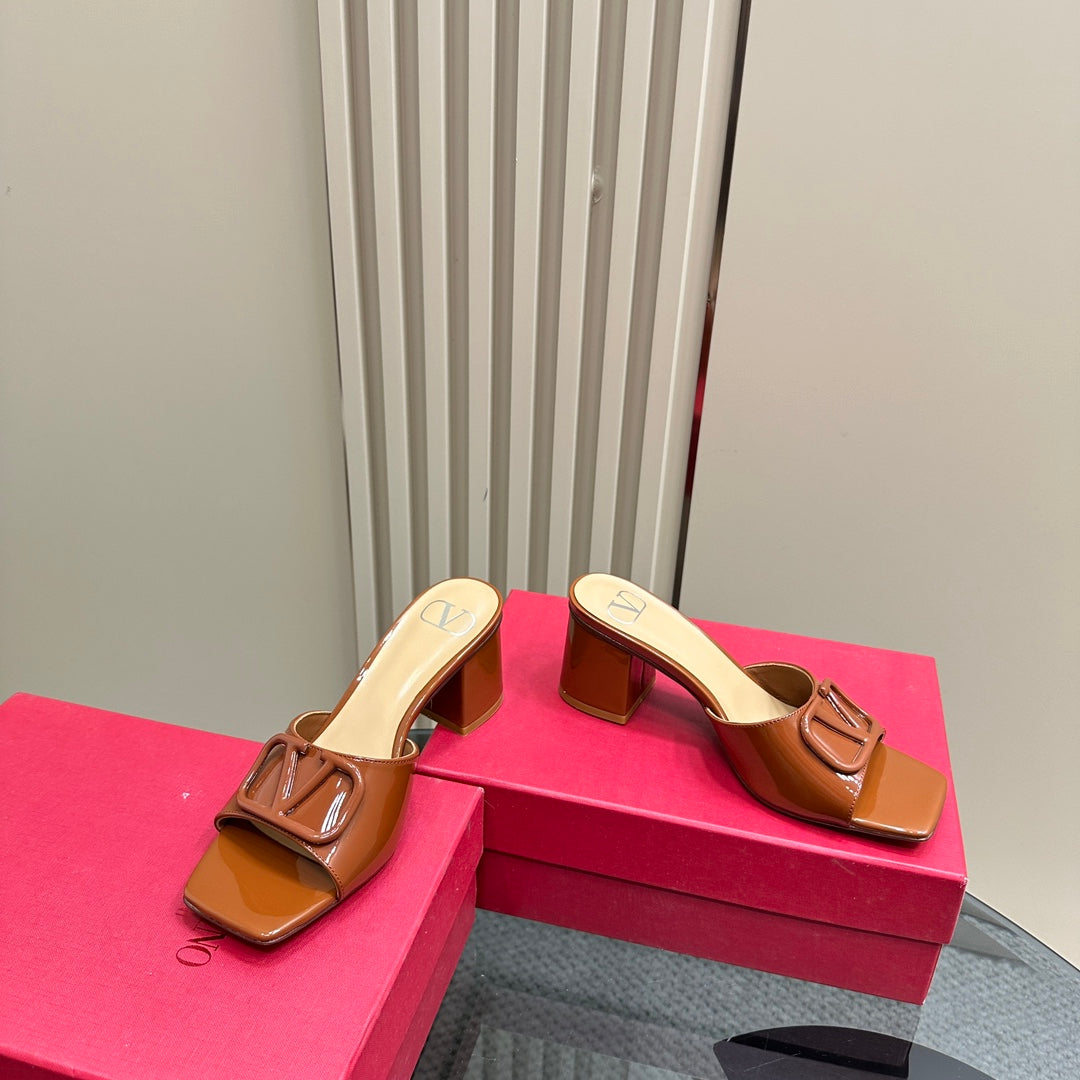Vogo Signature High Shine Open Toe Sandals In Brown Glossy Lambskin 839825