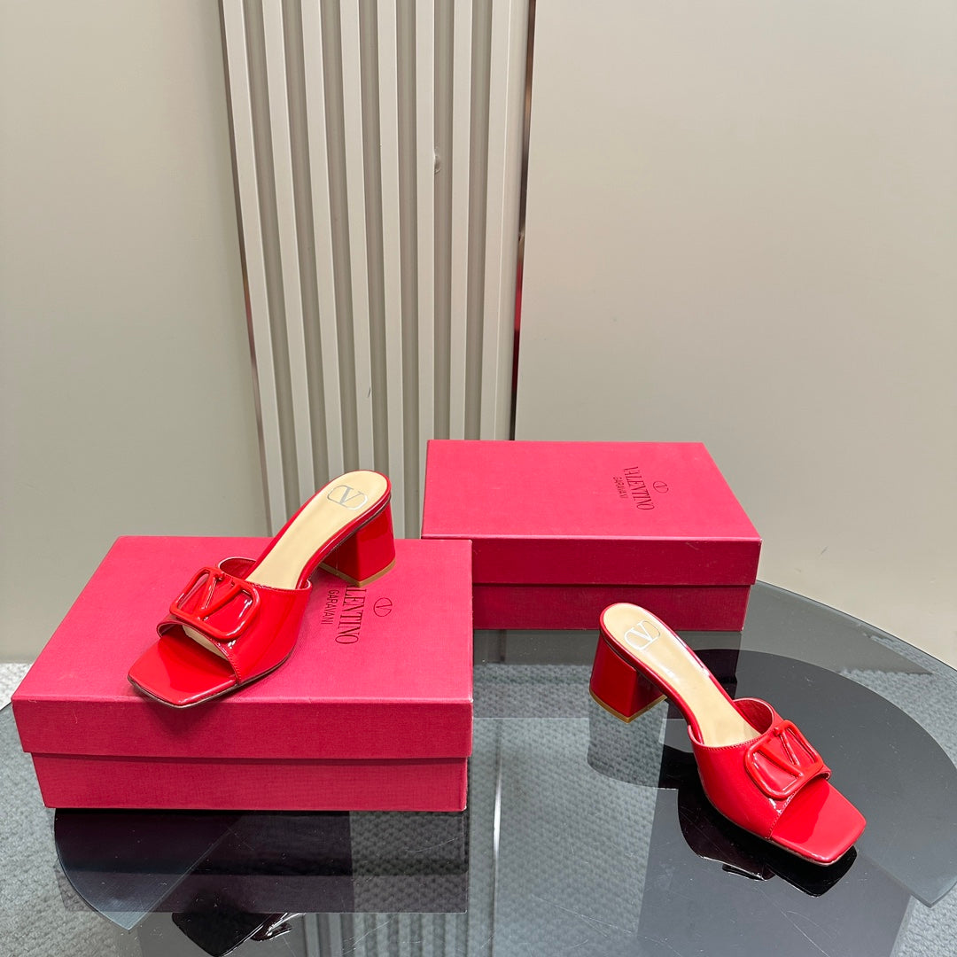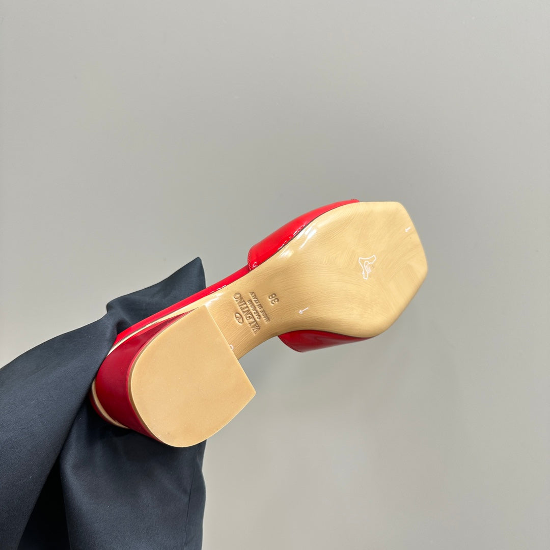 Vogo Signature High Shine Open Toe Sandals In Red Glossy Lambskin 839831