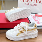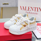 VT 2025 Garavani Sneakers White Gold Cowhide Fabric 546990