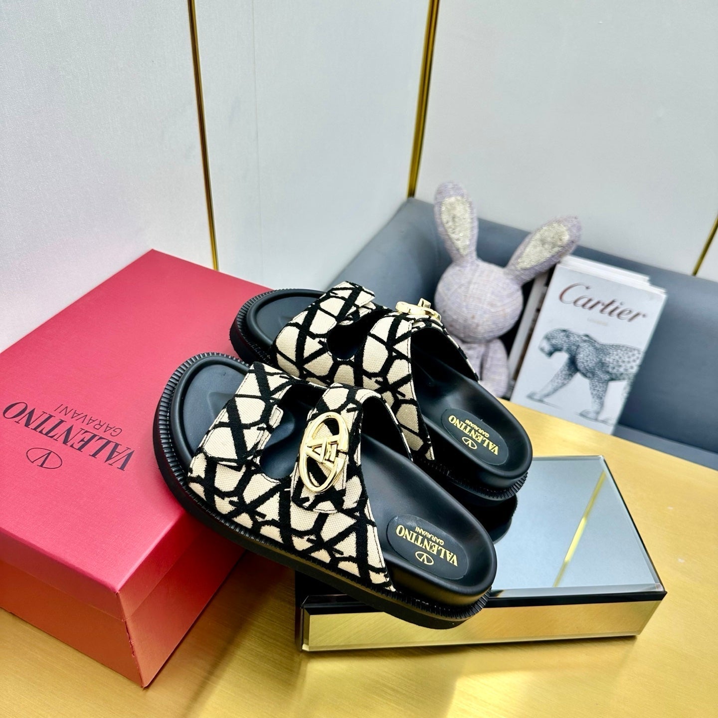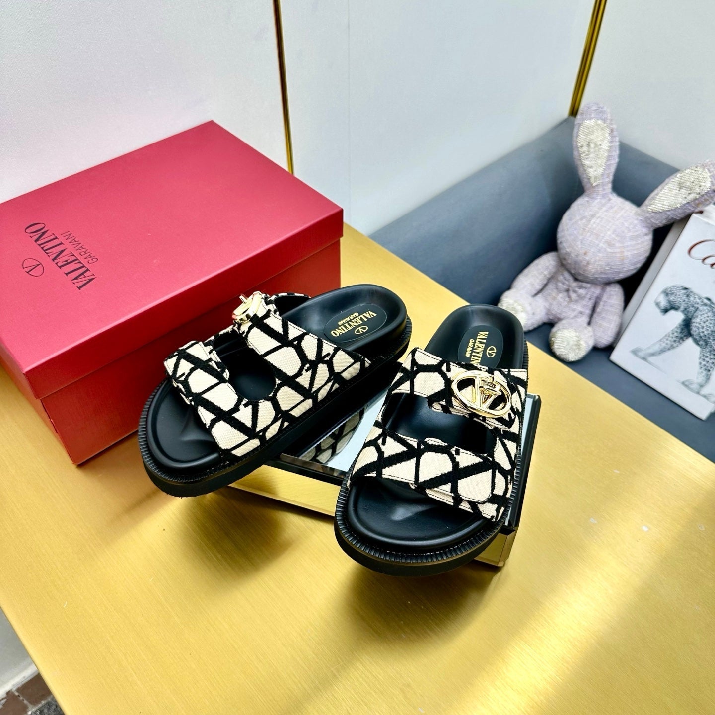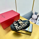 VT 25 Platform Sandals Black Beige Slippers Cowhide