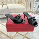 VT 25 Rockstud Bow Mule Black Patent Leather 342075