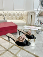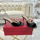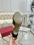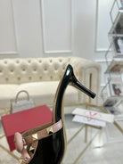 VT 25 Rockstud Bow Mule Black Pink Patent Leather