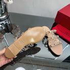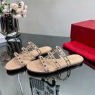 VT 25 Rockstud Flat Sandals Beige PVC Sheepskin