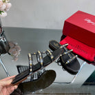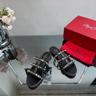 VT 25 Rockstud Flat Sandals Black PVC Sheepskin