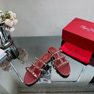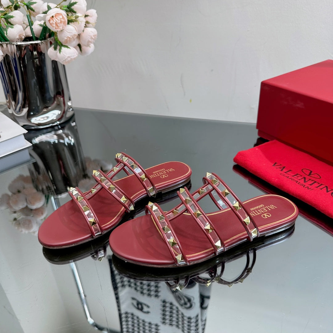 VT 25 Rockstud Flat Sandals Ruby Red PVC Sheepskin