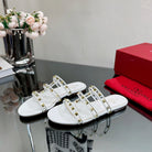 VT 25 Rockstud Flat Sandals White PVC Sheepskin 331947