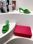 VT High Heeled Sandals Green Sheepskin 292791