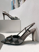 VT High Heeled Slingbacks Gray Sheepskin 292815