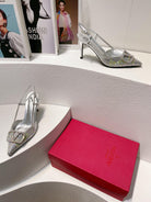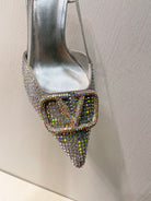 VT High Heeled Slingbacks Silver Sheepskin 292823