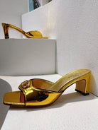 VT Mid Heel Mule Sandal Gold Sheepskin 292764