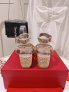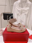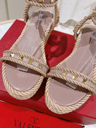 VT Rockstud Platform Sandals 65mm Pink Nude Espadrilles Calfskin 521310