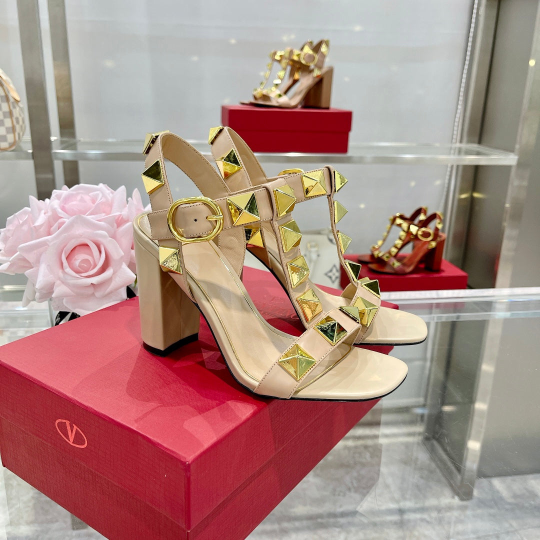 VT Rockstud Sandals Beige Gold Cowhide
