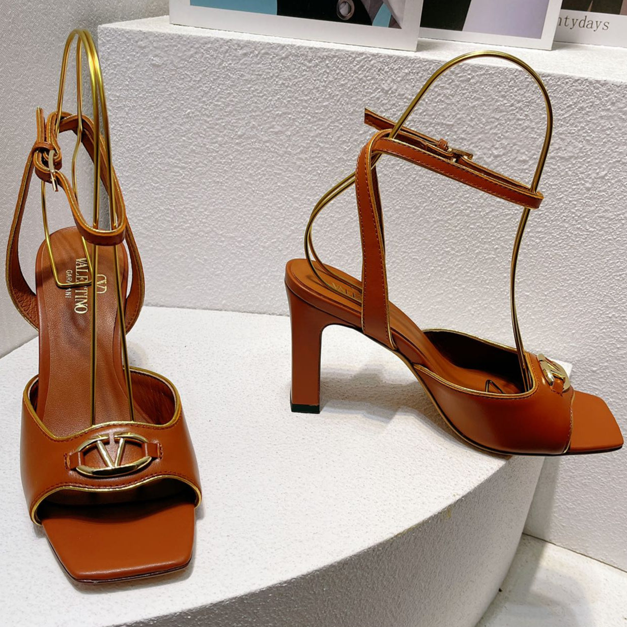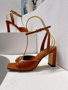 VT Sandals Heels 70mm Brown Cowhide 292783