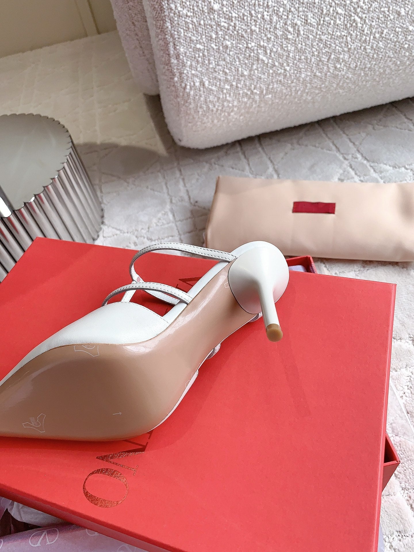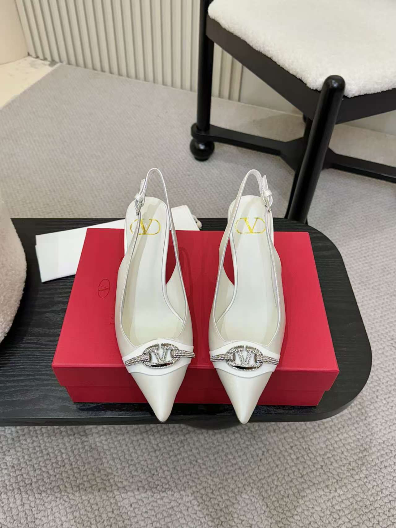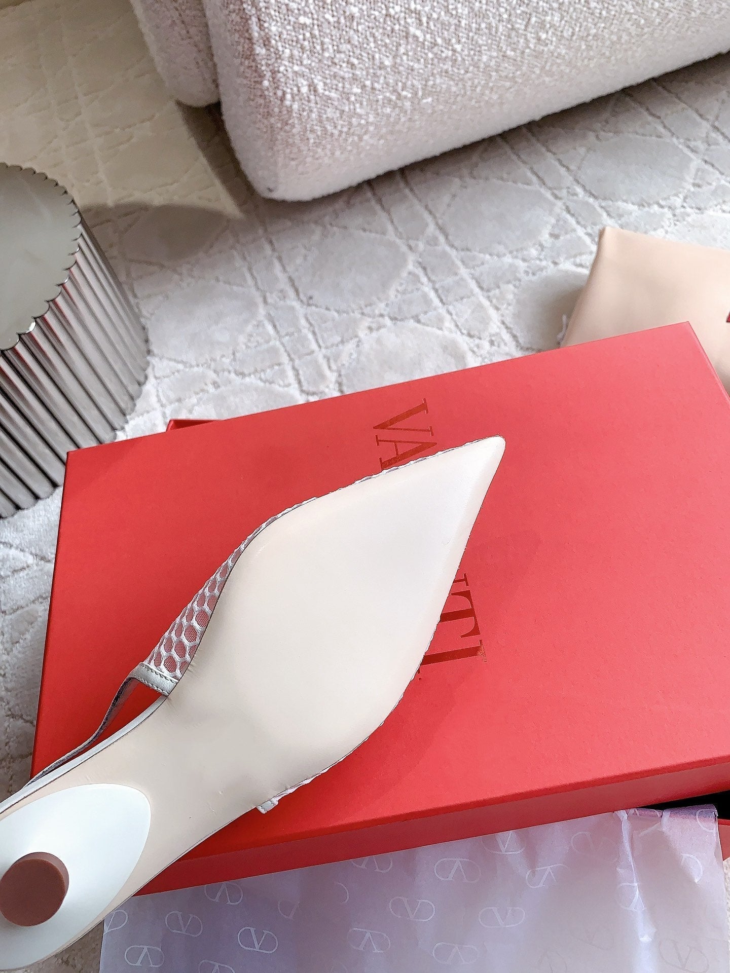 Valentino 25 White Vlogo Signature Slingback Pumps Black Silk 239504